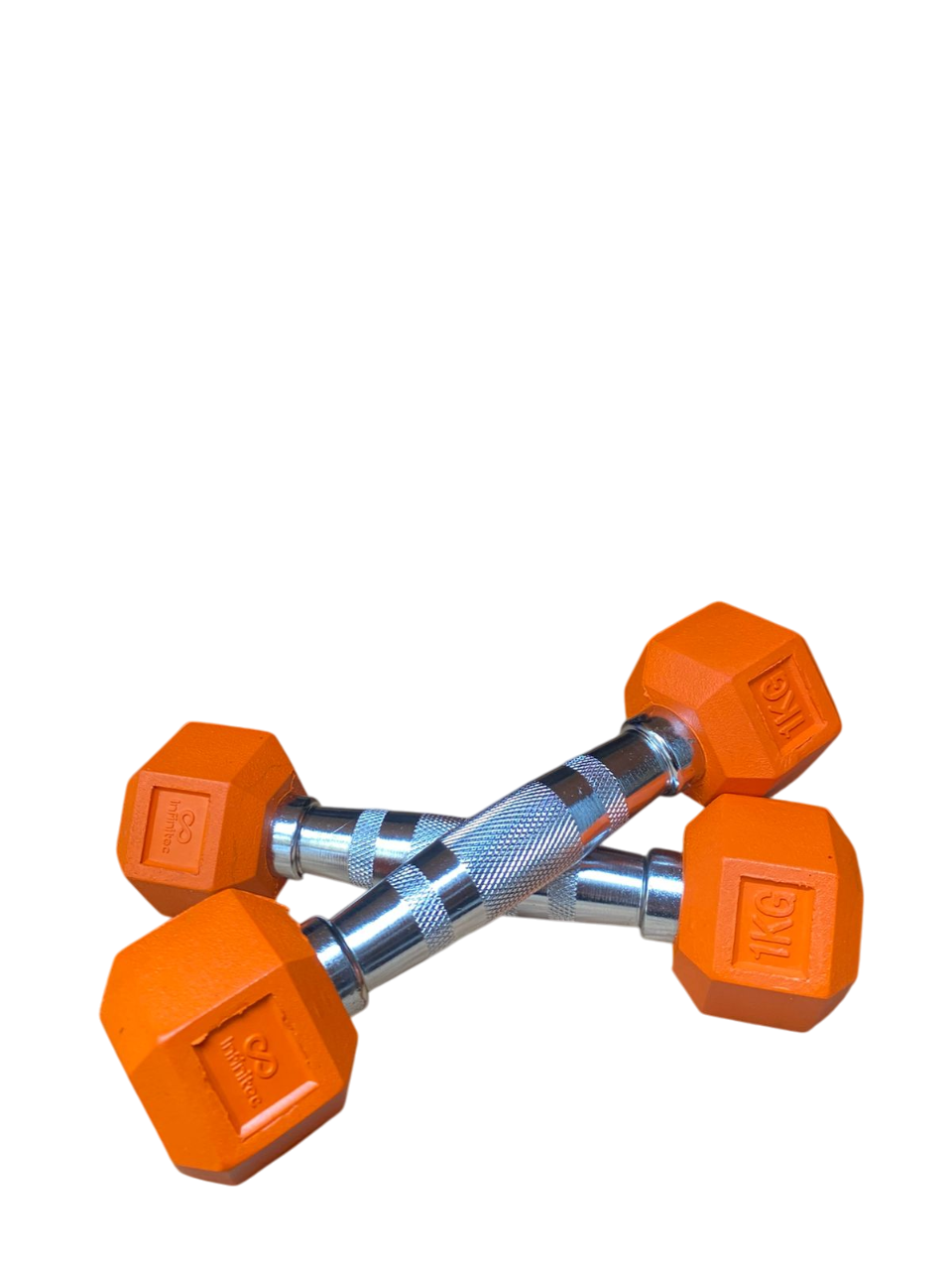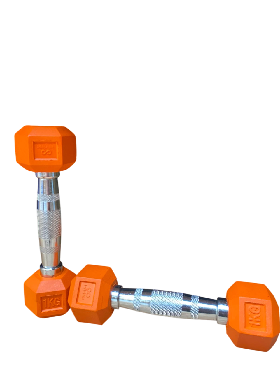 Mancuernas hexagonales de goma de alta calidad para gimnasios y box, ideales para entrenamientos de musculación.