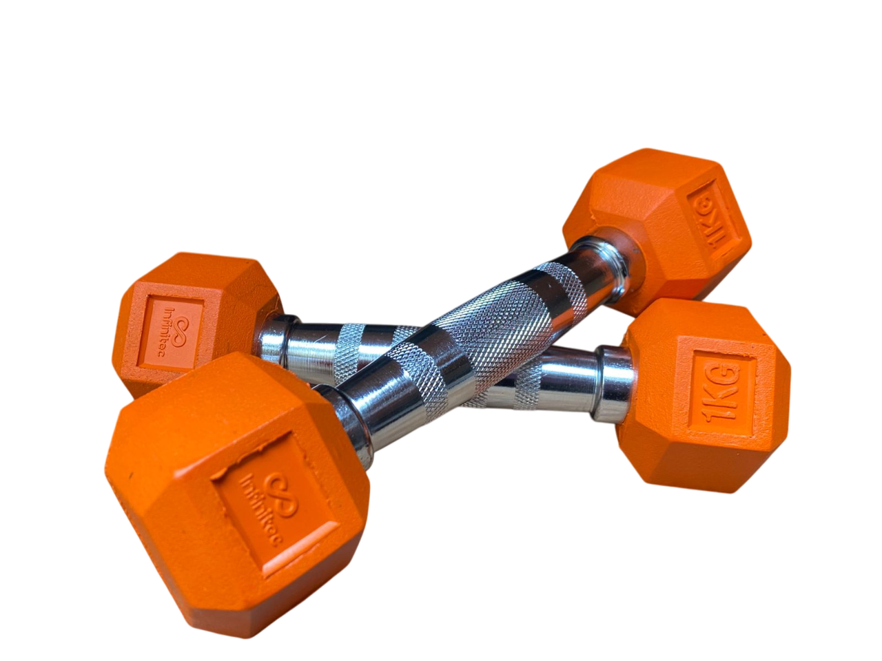 Gracias a su forma hexagonal, estas mancuernas profesionales pueden colocarse en el suelo sin que se desplacen rodando, y pueden utilizarse para diferentes ejercicios de entrenamiento funcional y fuerza. Gran calidad y durabilidad.